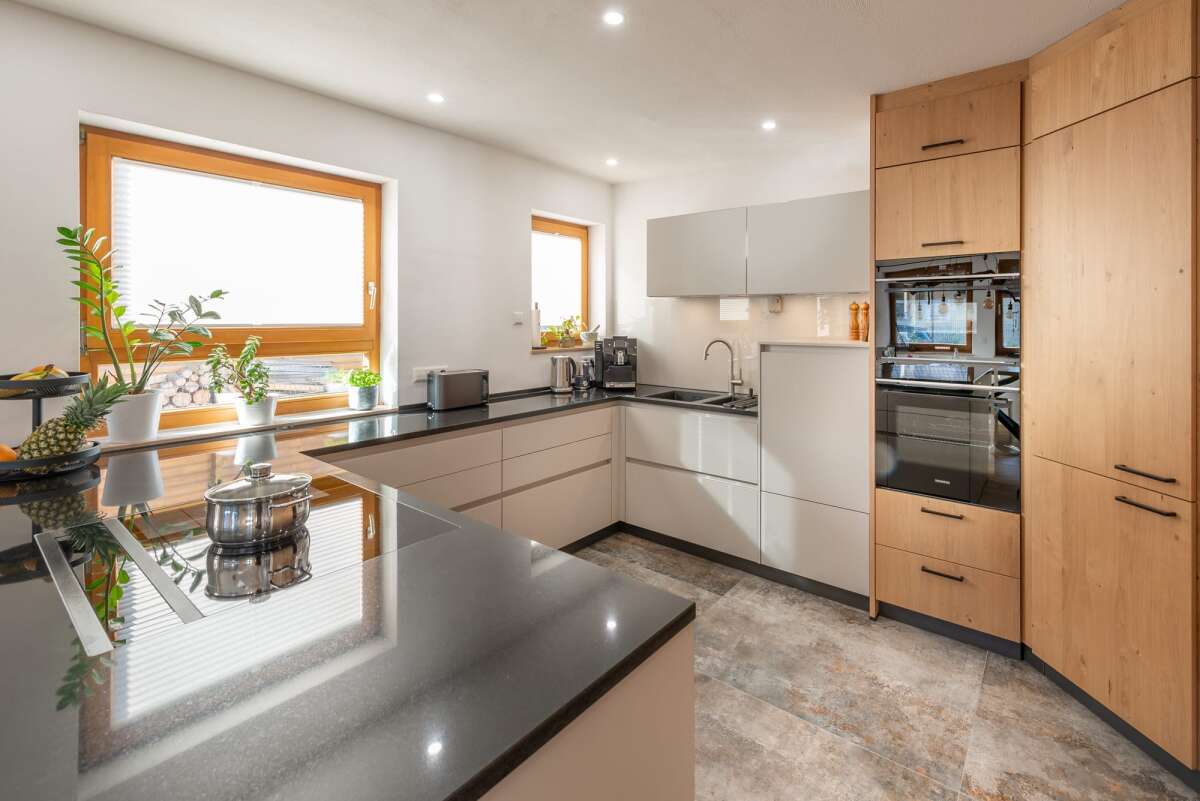Klare Linien, warme Materialien – Küche von Familie Pfeifer