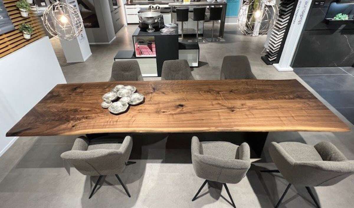 Ausführung geteilte Platte rustikaler Nussbaum – Äste und Risse gefüllt