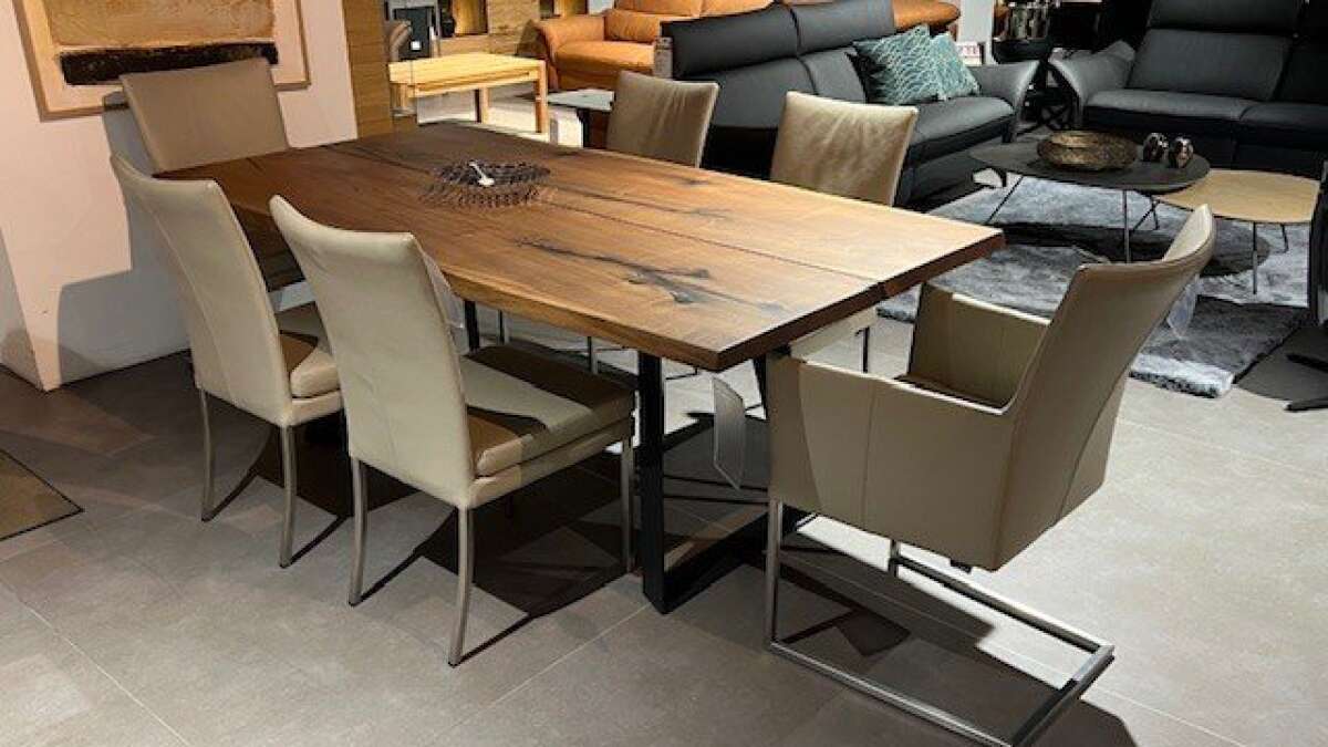 Ausf. rustikaler Nussbaum Naturöl, 2-teilig massiv, Äste und Risse versiegelt