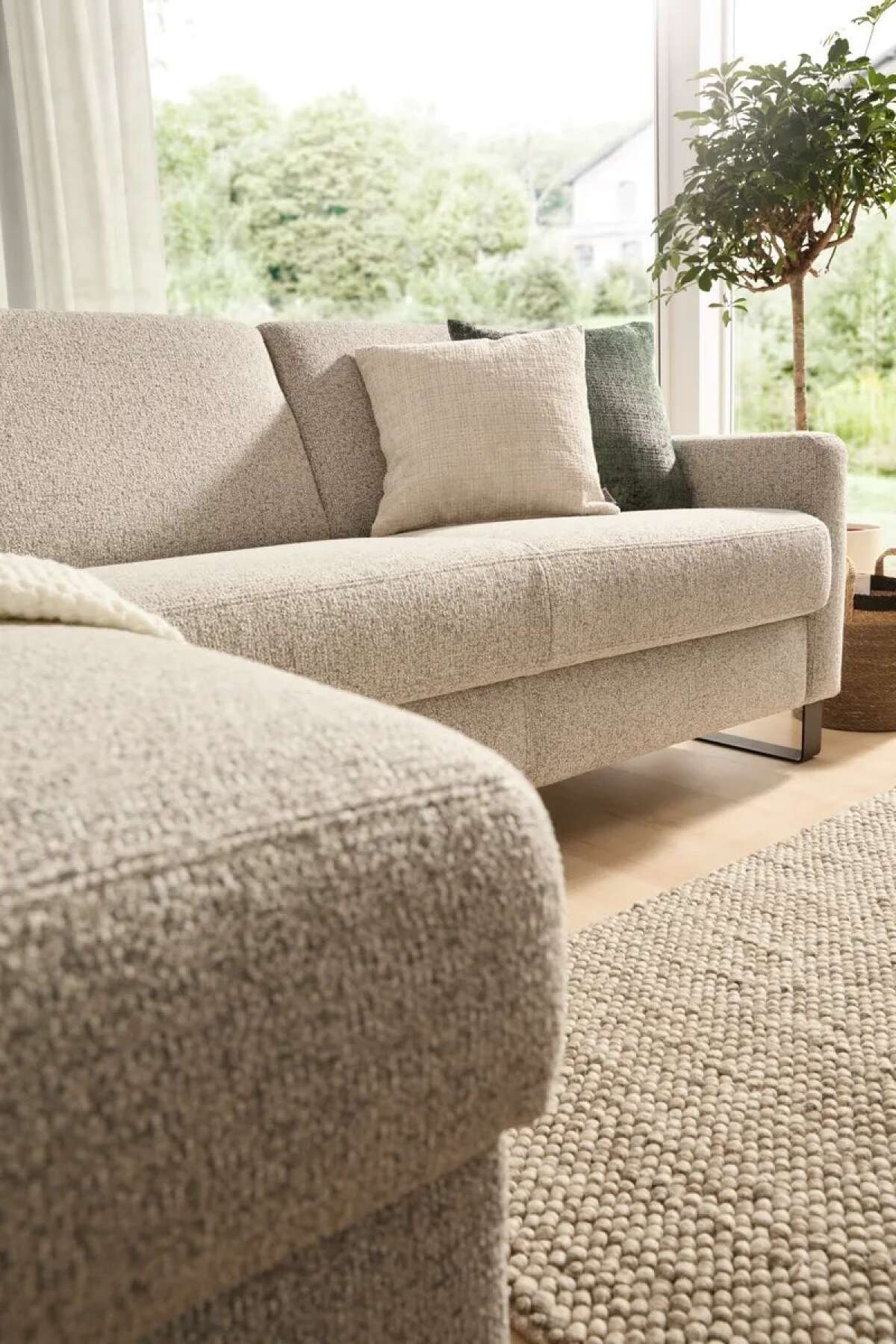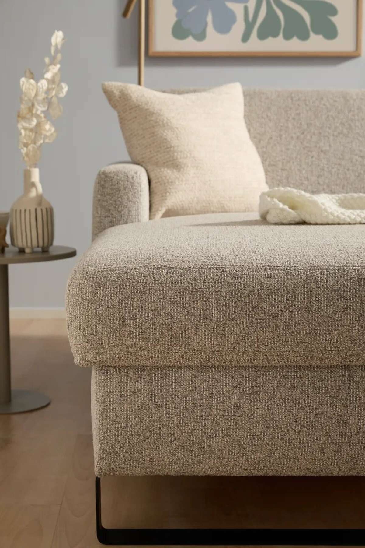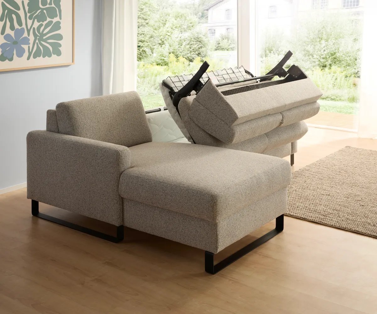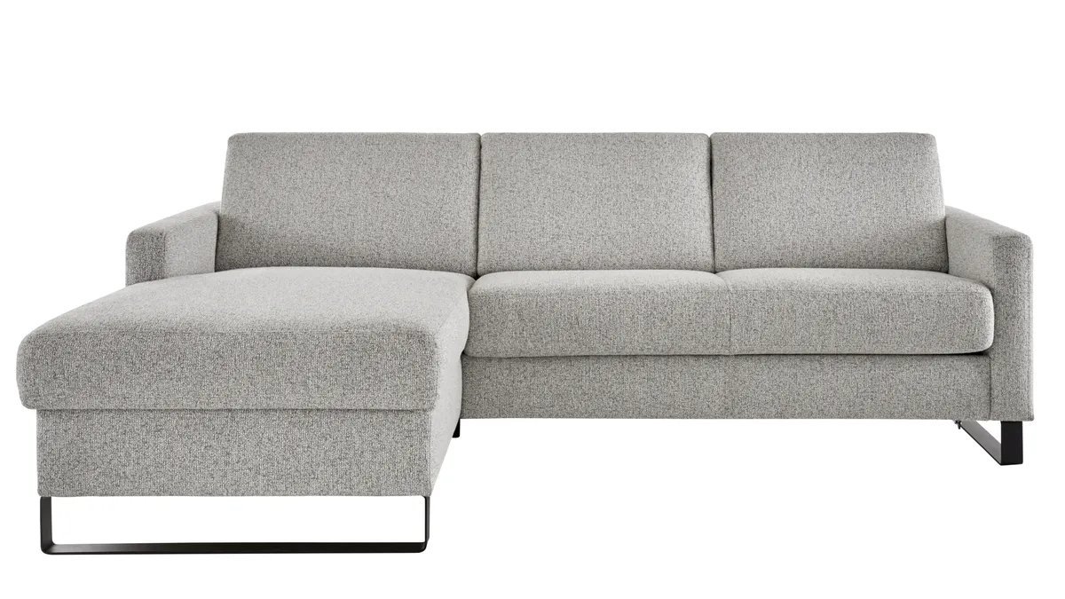 Longchair mit 2-Sitzer rechts inkl. Schlaffunktion mit Bettkasten, Stoff, Graubeige